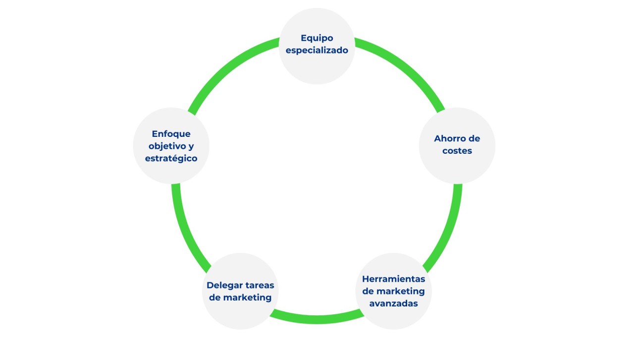 Si tienes en tu equipo expertos en cada una de las parcelas del marketing, puedes optar por externalizar este servicio. Conocer las ventajas de esto quizás te ayude a tomar una decisión: