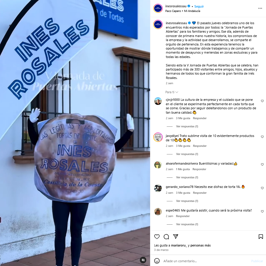 Ejemplo: tortas de aceite hay muchas, pero ninguna con la trayectoria de la marca Inés Rosales. Por eso, su envoltorio conserva el mensaje de antaño, al igual que aparece en su web y en contenidos de redes como este, donde la torta cobra vida. Total ejemplo de coherencia.