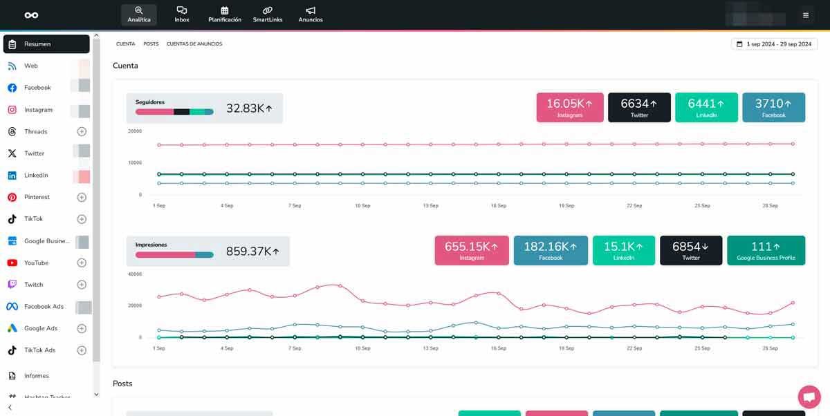 Metricool ofrece un plan gratuito que cubre las necesidades básicas, pero para acceder a todas sus funcionalidades avanzadas, como los informes personalizados, es necesario un plan de pago. Destaca por su facilidad de uso y su capacidad para conectar métricas de diversas plataformas.