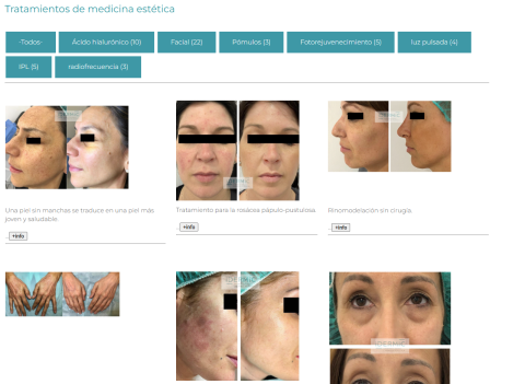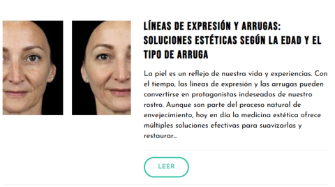 - Muestra el antes y el después de los tratamientos. Un básico en la comunicación de marketing para centros de estética. El cliente que contrata tus servicios quiere un cambio físico, sentirse más a gusto consigo mismo, solucionar algún problema funcional (por ejemplo, desviación de tabique), etc. Además, mostrar casos de éxito puede ayudar a que el cliente venza algunas objeciones que pueda tener a la hora de contratar el servicio, como el temor a que el resultado no es lo que espera o si es un procedimiento seguro. Te recomendamos que crees un apartado concreto en tu web con los casos reales de tu clínica para que el usuario lo tenga a mano si quiere consultarlos.