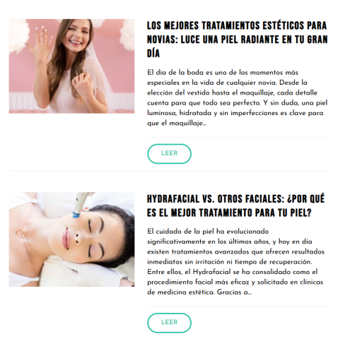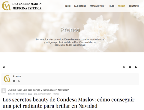 - Crea un apartado de prensa para mejorar tu reputación digital.  Que hablen bien de tu clínica en medios, entrevistas o artículos especializados es buena señal y te brinda la oportunidad de transmitir confianza y credibilidad a tus futuros pacientes. Además, te posiciona como referente en el sector. Ponte en la piel de una paciente que busca clínicas estéticas reputadas porque siente mayor seguridad al ponerse en manos de especialistas reconocidos y con bastante trayectoria. Si ve tu marca en un medio reputado, es probable que se interese por tu centro y busque información. Consejo extra: te recomendamos que no publiques los artículos de prensa en el apartado de blog. Se trata de dos estrategias diferentes: una para mejorar el posicionamiento y otra para trabajar la reputación de marca.