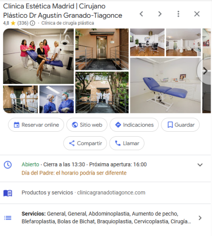 - Incluye el posicionamiento local en tu estrategia. Lo más habitual es que los pacientes que recibas sean de zonas cercanas a la ubicación de tu centro. Por eso, uno de los aspectos esenciales a tener en cuenta en el área de SEO es trabajar tu ficha de Google My Business para que el buscador te muestre en el pack local. También es importante que incluyas palabras clave de ubicación en tu web. Si tienes clínicas con ubicaciones distintas, te recomendamos que crees landings con cada una de las ubicaciones. No obstante, en estos casos, a veces el paciente puede decidir desplazarse a ciudades o zonas algo más alejadas de su lugar de residencia si la clínica que le interesa tiene más reputación. Por eso, considera incluir en tu estrategia SEO keywords del estilo, mejores clínicas de estética en [ciudad o pueblo cercano a la clínica].