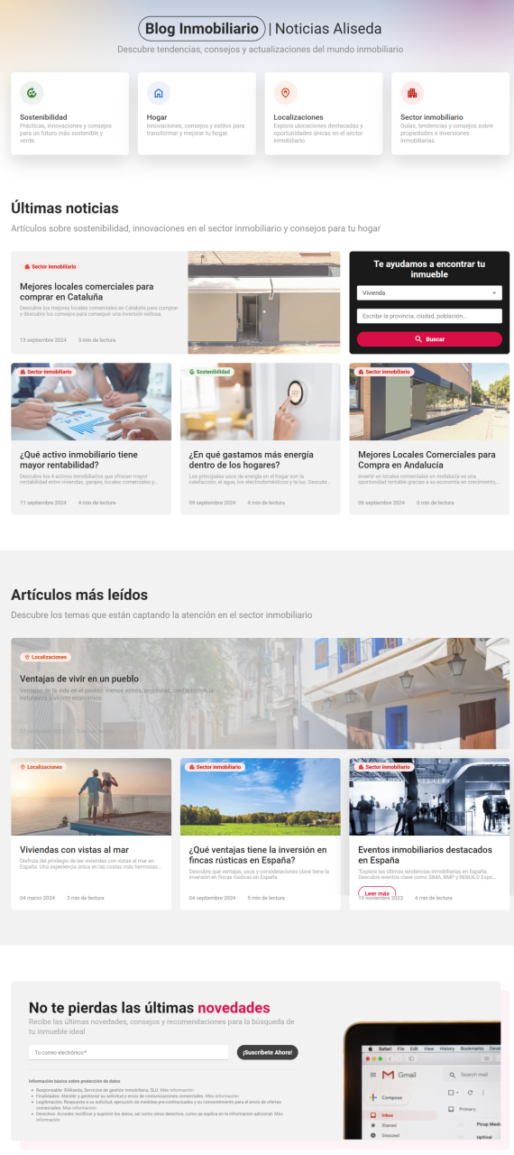 - Marketing de contenidos orientado a SEO. Ponte en la piel de tu cliente. A la hora de comprar o vender una vivienda son muchas las dudas que pueden surgirle y resulta probable que acuda al buscador para resolverlas. Por ejemplo, ¿qué tal si haces una guía de compra de vivienda? También puedes crear contenido enfocado a consejos para vender, noticias de actualidad… Pero eso sí, siempre necesitas contar con un buen estudio de palabras clave. Aquí te dejamos como ejemplo de buen trabajo el blog de Aliseda Inmobiliaria: