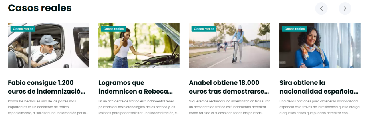 - Cuenta casos reales de clientes. A veces, es complicado encontrar un cliente que quiera contar en un vídeo o entrevista su caso personal y cómo el bufete ha resuelto sus problemas. Pero resulta una opción ideal para generar confianza en los usuarios que se plantean contratar tus servicios. Cuando no es posible hacer esto, hay otras alternativas, cómo detallar el caso usando un seudónimo, por ejemplo. Así es cómo lo hace Legálitas: