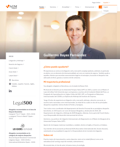 - Muestra a tu equipo y humaniza tu marca. Quizás lo primero que se te venga a la cabeza en este punto es detallar la experiencia y la formación de tu equipo como valor añadido para los clientes. Y sí, está genial, pero, ¡ojo!, no conviertas el apartado de «quiénes somos» de tu página web en currículum. Te recomendamos usar la técnica del storytelling para humanizar tu marca y presentar al equipo de forma más cercana. ¿Quieres ir un paso más allá? Añade un pequeño detalle personal de los miembros de tu equipo. Mira cómo lo hacen en este bufete: