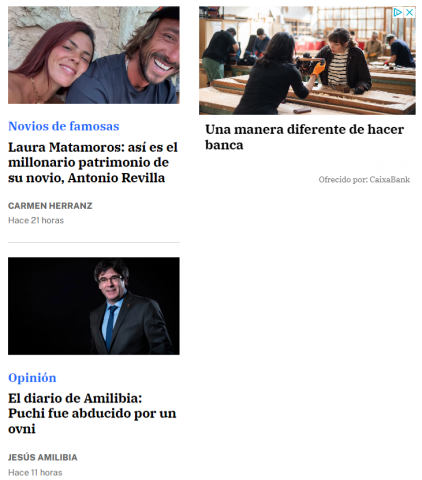 - Native Ads: pasan desapercibidos como publicidad porque imitan muy bien el estilo y diseño del propio sitio web donde se insertan. Aparecen normalmente en periódicos, entre los titulares de las noticias.