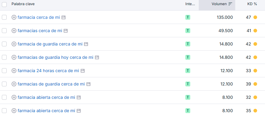 Aún hay farmacias que no están online, pero también es importante que trabajen el SEO. ¿El motivo? Cuando un usuario necesita acudir a una farmacia, busca en internet cuál tiene más cerca. De hecho, hay un volumen importante de búsquedas con keywords como farmacia cerca de mí.