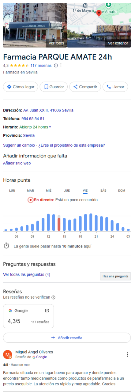 Google muestra primero las farmacias más relevantes en su Pack Local.