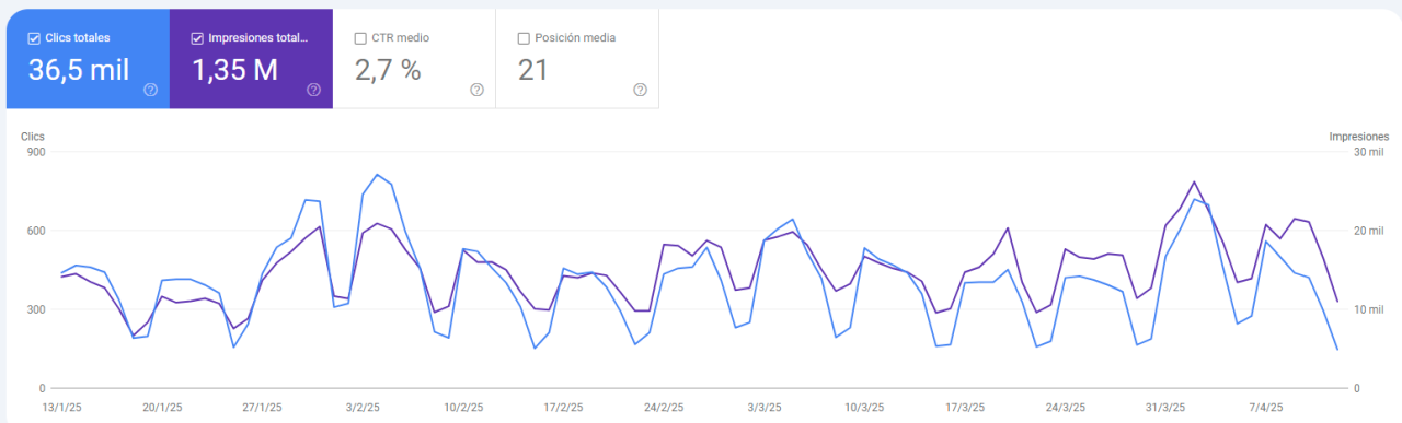 Consejo extra: te invito a que eches un vistazo a las consultas que entran en las URL con más impresiones de tu web y observes si hay relación entre el término que buscan los usuarios y la página de destino. Si no es así, es momento de mejorar ese contenido.
