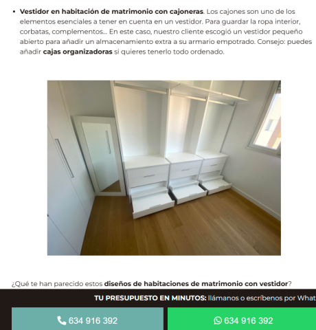 Trabajamos con un cliente que fabrica muebles a medida, y detectamos que los usuarios buscaban ejemplos de trabajos realizados para inspirarse. En ese caso, prima más la imagen que el contenido en texto que lo acompaña. La intención de búsqueda del usuario aquí se centra en encontrar diseños con los que inspirarse, y no en localizar información extensa sobre las ventajas de los vestidores para habitaciones de matrimonio, por ejemplo.
